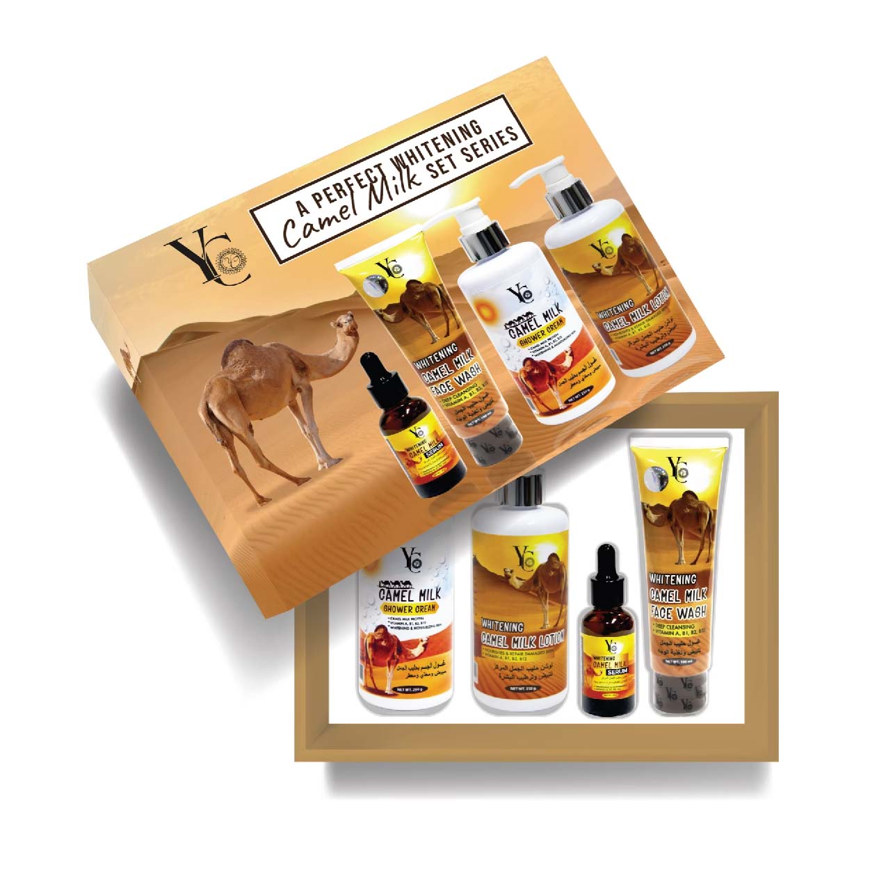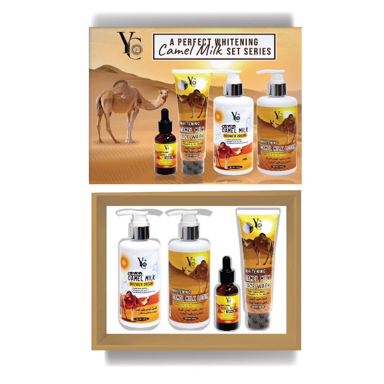 YC825 เซ็ตน้ำนมอูฐ บำรุงผิว โปรตีนเข้มข้นและลดเลือนริ้วรอย